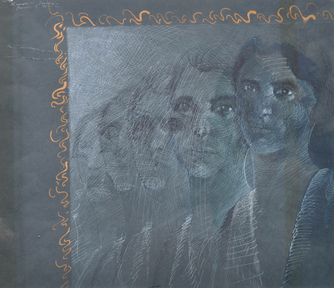 Gotthard Bonell (Truden/Trodena 1953) Studio di ritratto, 1977;Tecnica mista su carta colorata, 44 x 51,5 cm, in cornice