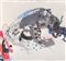 Peter Adrian Larcher (Bregenz 1955 - Innsbruck 2024) "Löwengeilbild" - Leone con donna in pelle alla moda,1989;Tecnica mista su carta, 23,5 x 25 cm