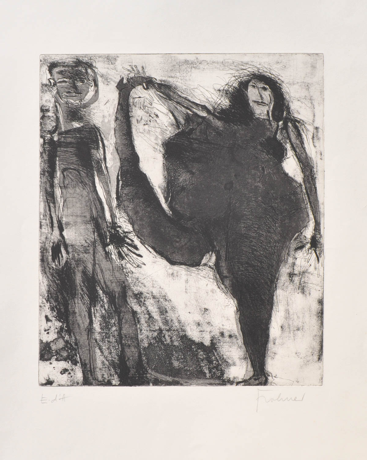 Adolf Frohner (Großinzersdorf 1934 - Wien/Vienna 2007) Pas de deux, 1968;Acquaforte e acquatinta, 43 x 36,5 cm (lastra),
