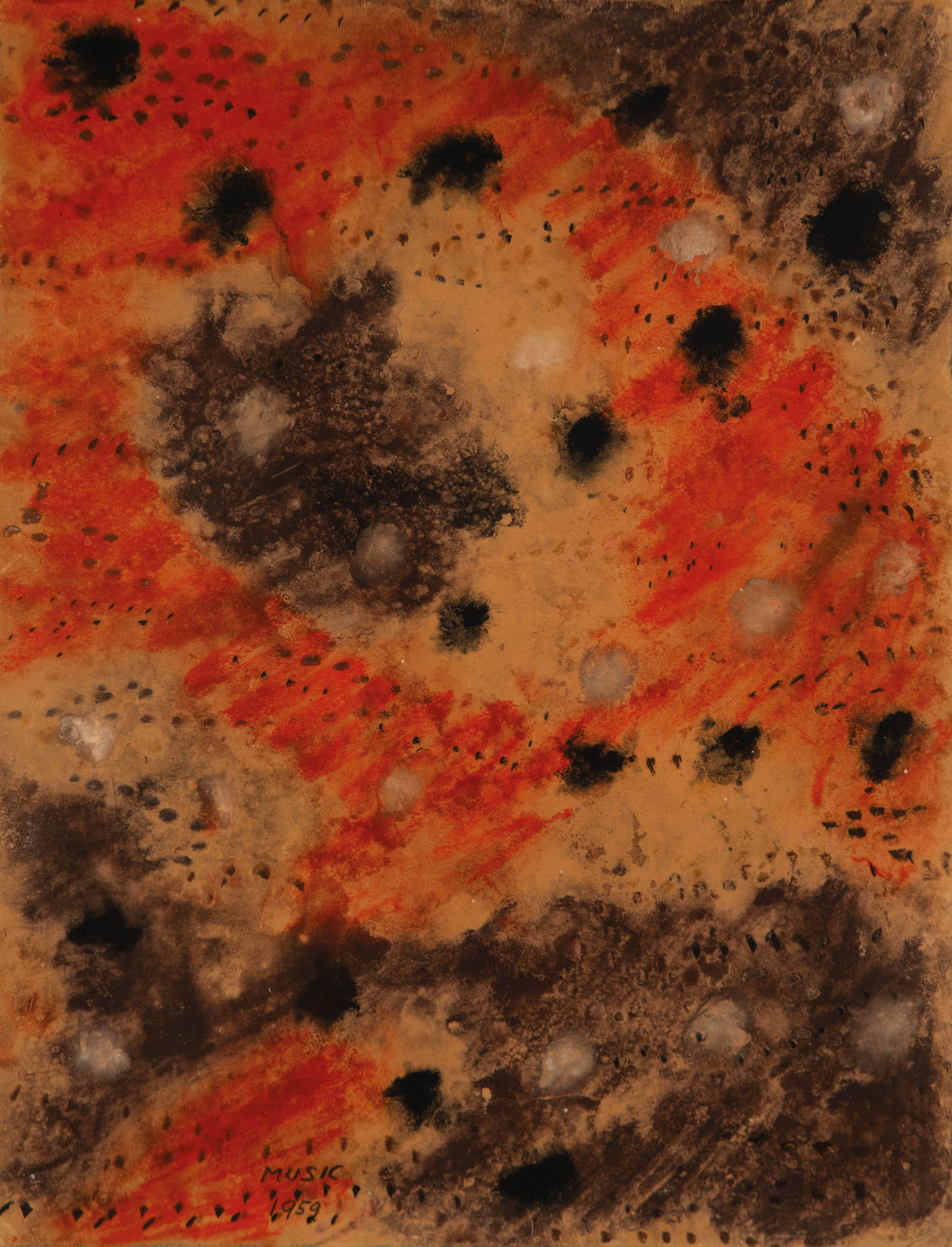Zoran Music (Boccavizza 1909 - Venedig/Venezia 2005) Il carso, 1959;Tecnica mista su carta intelata, 40 x 60 cm