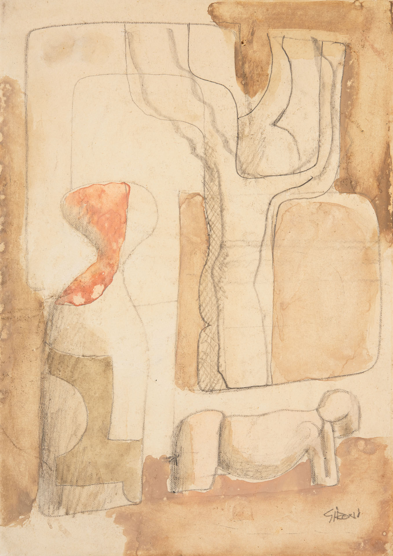 Mario Sironi (Sassari 1885 - Mailand/Milano 1961) Senza titolo;Tecnica mista su carta, 30 x 21,5 cm, carta scolorita
