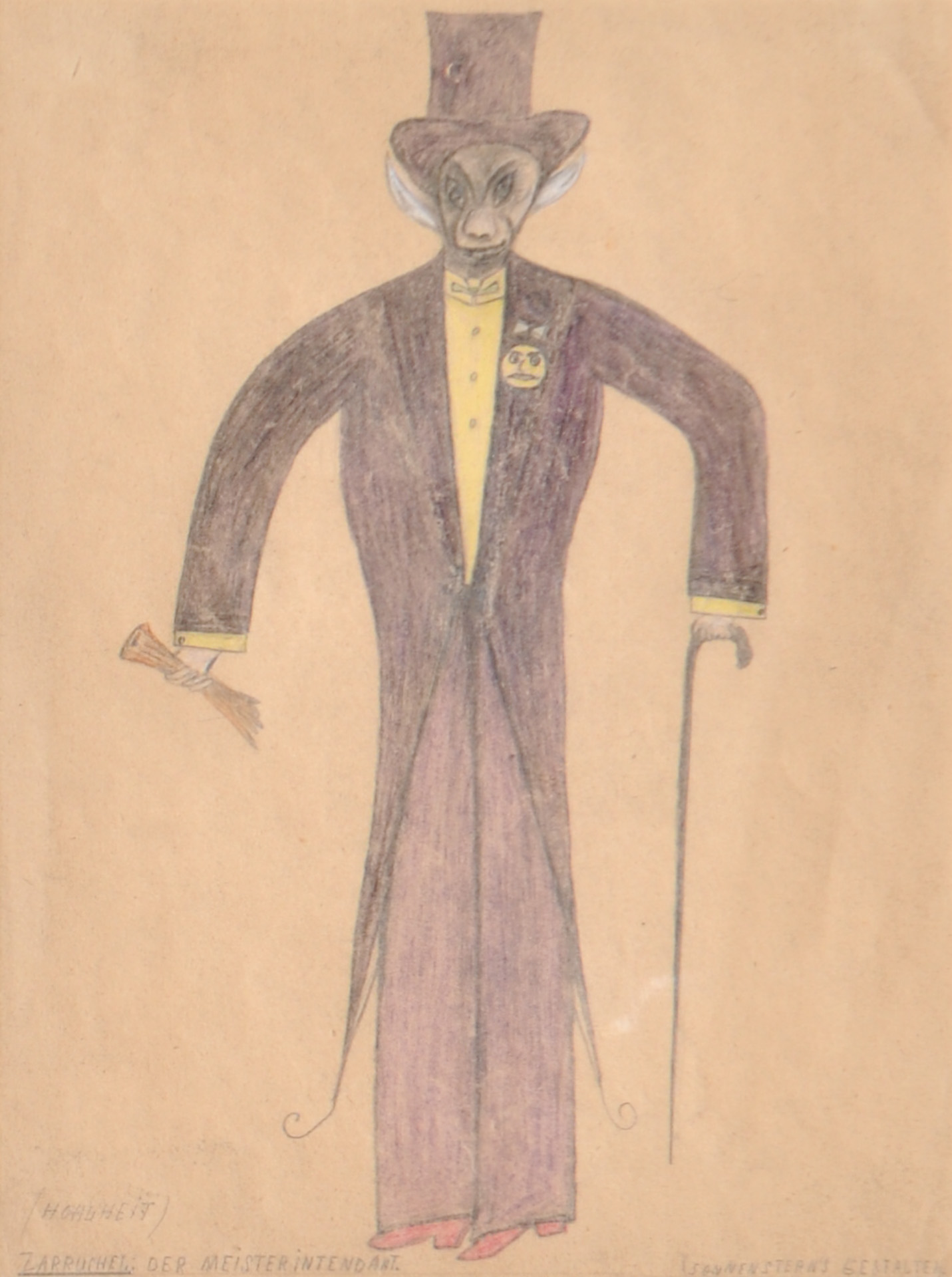 Emil Friedrich Schröder-Sonnenstern (Kaukehmen bei/presso Tilsit 1892 - Berlin/Berlino 1982) Zarruchel der Meisterintendant, 1950;Matite colorate su carta, 26 x 19,5 cm, al retro etichette "Galleria