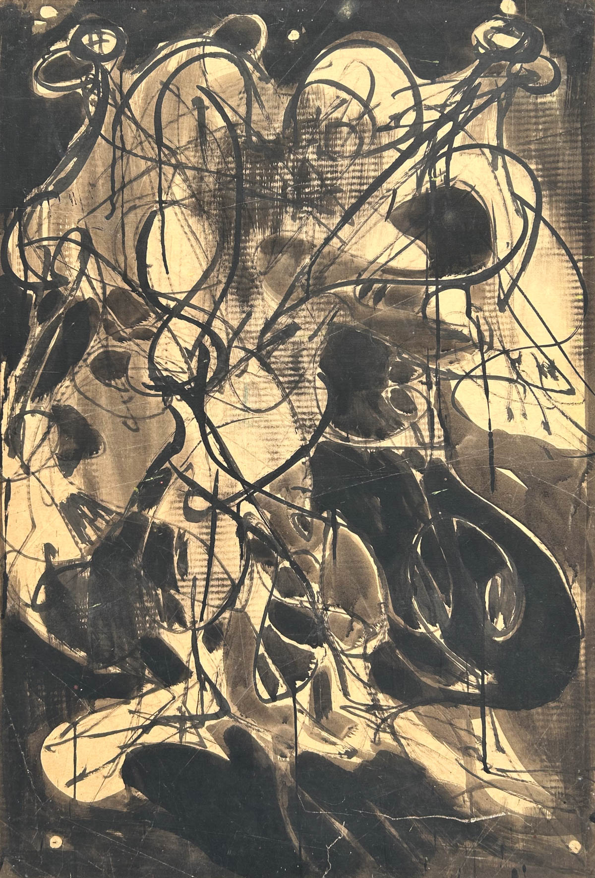 Luigi Spazzapan (Gradisca d’Isonzo 1889 - Turin/Torino 1958) Intreccio di figure, ‘40/50er Jahre;China su carta intelata, 99 x 69 cm, al retro etichette
