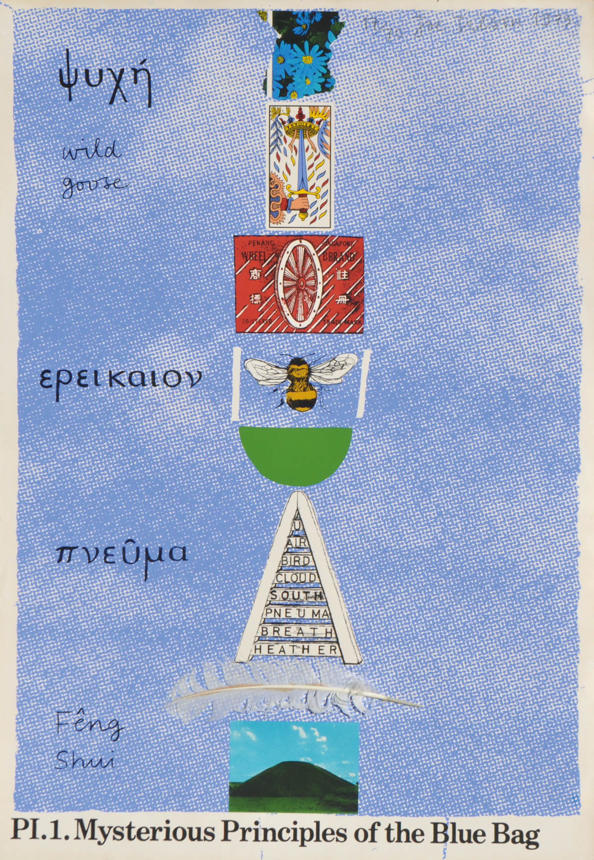 Joe Tilson (1928 - 2023) Mysterious Principles of the Blue Bag, 1973;Serigrafia a col. su carta, piuma, 100 x 70,5 cm