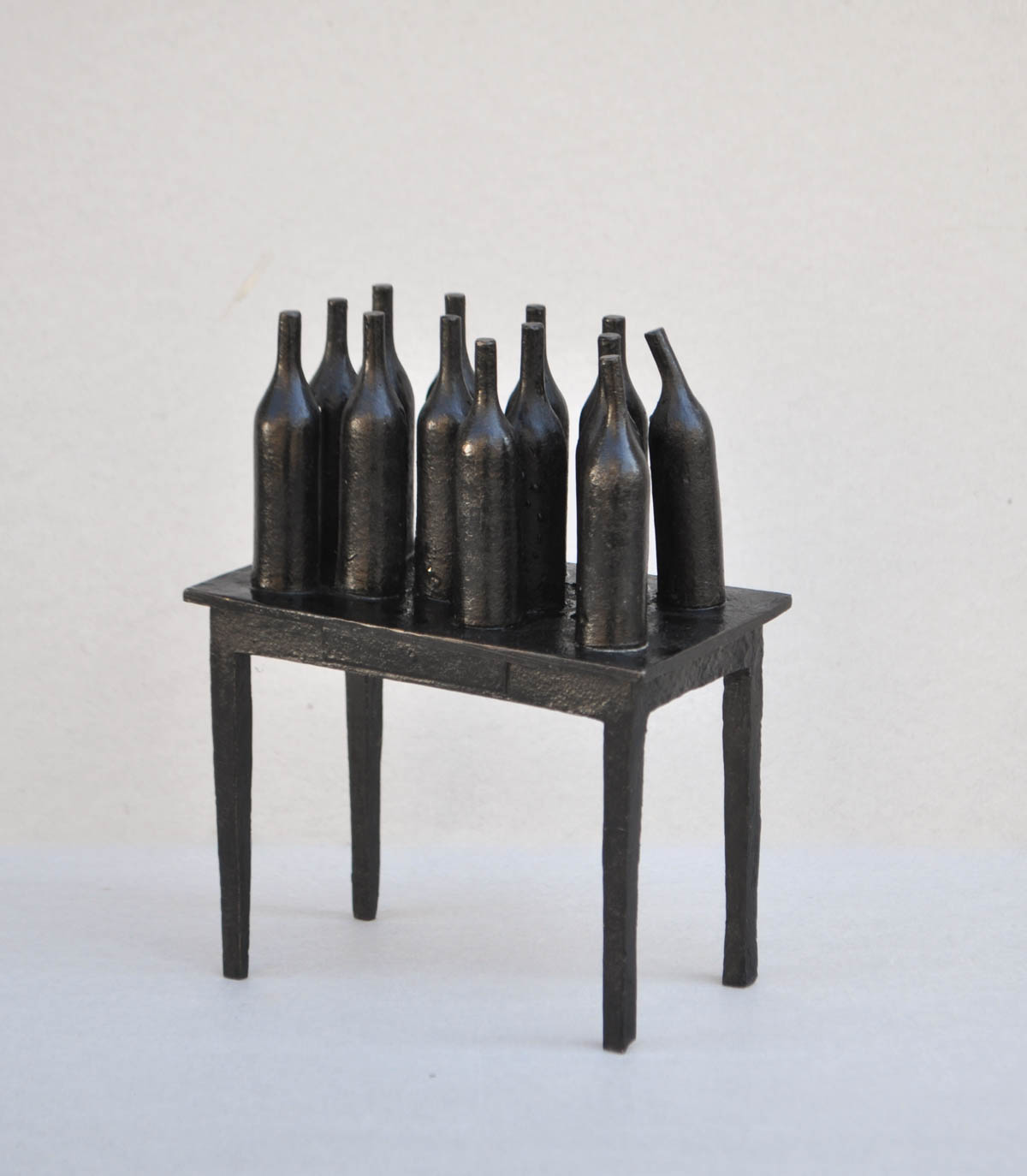 Mario Avati (Monaco 1921 - Paris/Parigi 2009) Tavolo con bottiglie, 1978;Bronzo, h. 17 x 12 x 7,5 cm