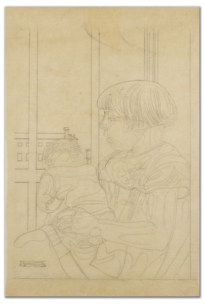 Cagnaccio di San Pietro "Studio per Lilli con la bambola" 1928 matita su carta d