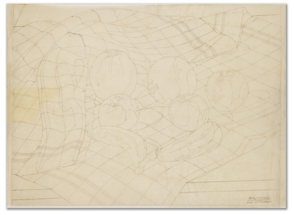 Cagnaccio di San Pietro "Studio per natura morta con frutta" anni '30 matita su