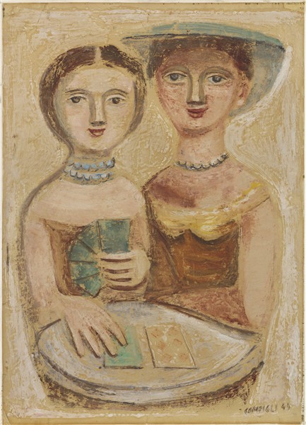 Massimo Campigli "Donne al tavolino" 1949 monotipo su carta applicata su tela cm