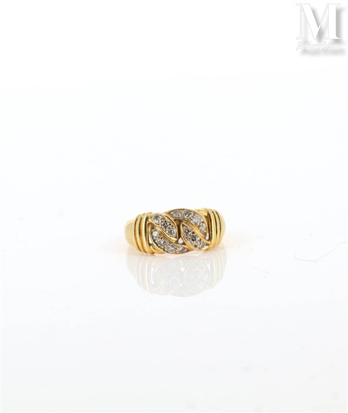 Bague jonc en or jaune 18k (750 millièmes) ornée de maillons imbriqués sertis de diamants ronds taille 8x8 épaulés de godrons.
