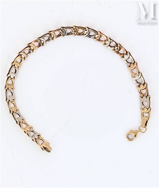 Bracelet en alliage d'or 9k (375 millièmes) formé d'une maille fantaisie dans les trois tons d'or.