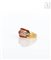 Bague jonc en or jaune et or blanc 18k (750 millièmes) sertie d'un rubis ovale épaulé de petits diamants ronds taille 8x8 et de lignes de petits rubis ronds.