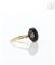 Anello in oro giallo 18 carati (750 millesimi) e argento (800 millesimi) con incastonata una pietra blu scuro (graffi marcati).