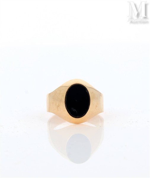 Chevalière en or jaune 18k (750 millièmes) orné d'un onyx ovale en serti massé.