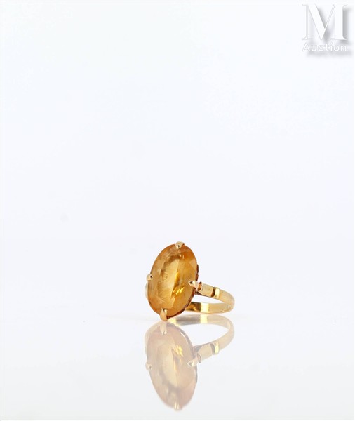 Bague Bague en or jaune 18k (750 millièmes) sertie d'une citrine ovale sur...