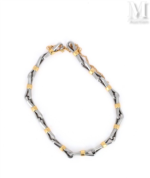 Bracciale in metallo argentato e oro giallo 18 carati (750 millesimi) composto da maglia Epi. Catena di sicurezza (danneggiata).