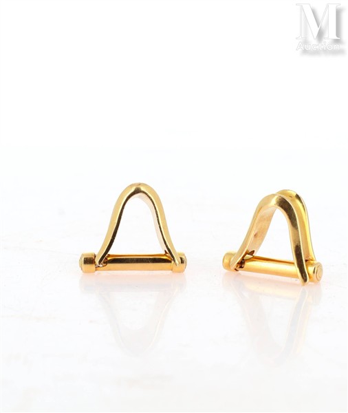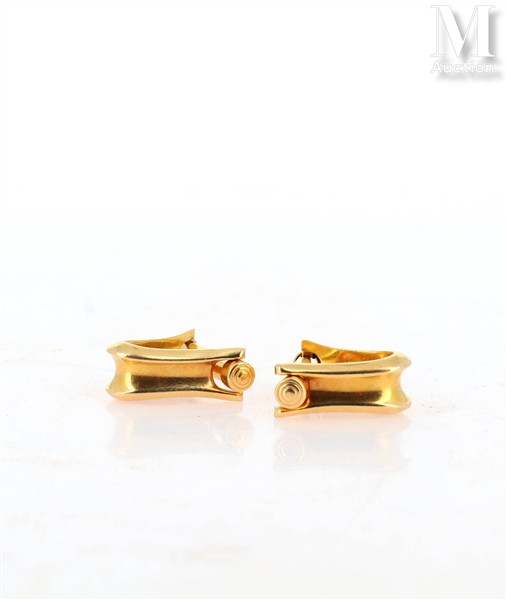 Paire de boutons de manchettes en or jaune 18k (750 millièmes) à motif incurvé.