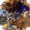 Ampio lotto di bigiotteria comprendente spille, fermagli e orecchini, collane, pendenti, anelli, ecc. in vari materiali (oro, metallo argentato, perle di vetro, smalti, pietre ornamentali)