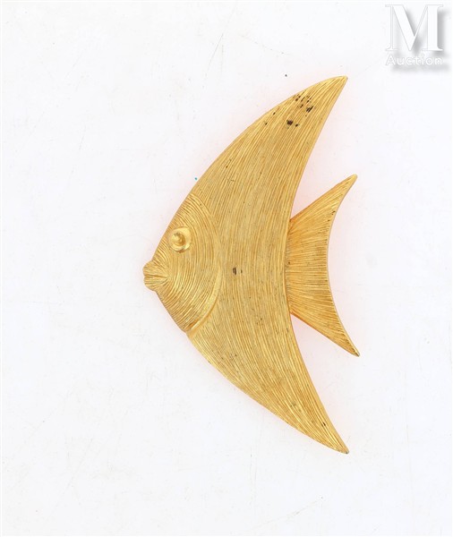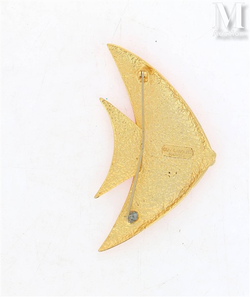 Guy LAROCHE Broche en métal doré figurant un poisson. Signée Guy Laroche. H.:...