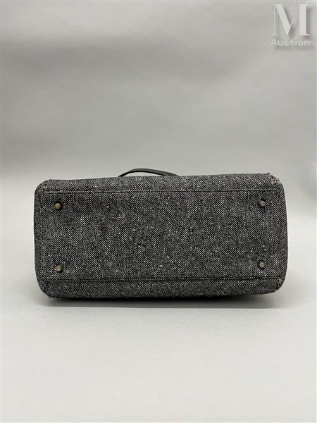 CHRISTIAN DIOR Sac "Lady Dior" en tweed gris chiné et cuir noir. Bijouterie...