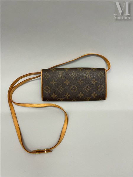 LOUIS VUITTON Pochette en toile enduite monogrammée et cuir gold. Bandoulière...