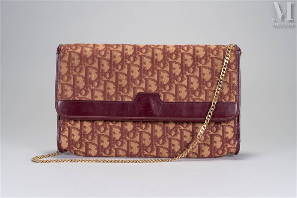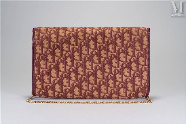 CHRISTIAN DIOR Pochette portée épaule en toile tissée monogrammée bordeaux....