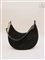 Borsa a mezzaluna in pelle nera effetto camoscio, catena in metallo oro, portata a spalla.