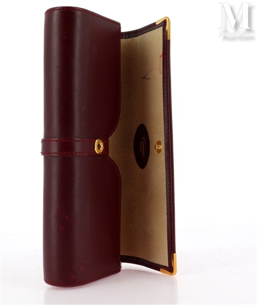 CARTIER Etui à lunettes en cuir bordeaux appliqué du logo de la maison,...