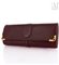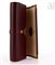 Custodia per occhiali in pelle bordeaux con applicato il logo della casa, pennacchi in metallo dorato.