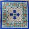 Sciarpa in seta con decoro geometrico policromo in doppia bordatura floreale e blu.