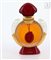 Flacon de parfum Panthère de Cartier en verre amati épaulé de deux panthères affrontées, la panse cerclé de résine dorée, bouchon et base en résine bordeau.