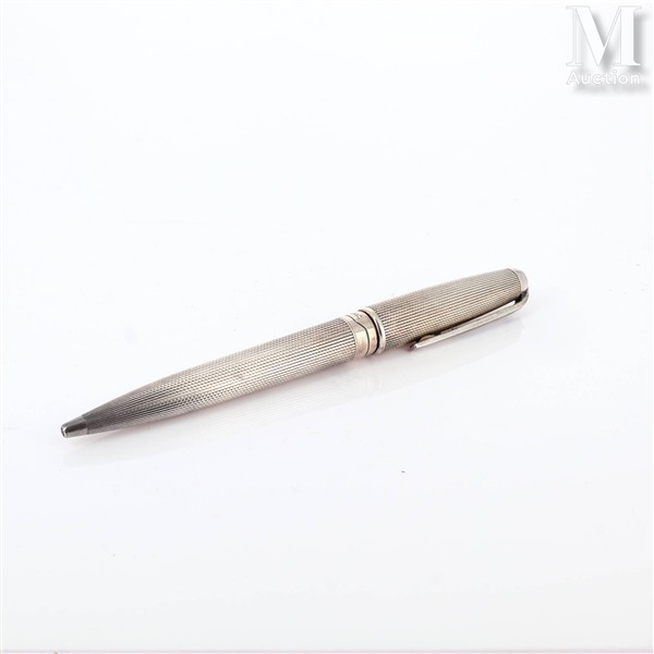 S.T. DUPONT Stylo à bille en métal argenté à motifs de lignes perlées. Signé,...
