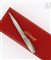 Stylo à bille en métal argenté à motifs de lignes perlées.