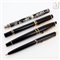 Due penne stilografiche e una criterium in resina nera, finiture placcate oro. Pennino in oro 18k per uno.