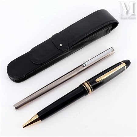 - Un stylo bille modèle Meisterstück, en résine noire, attributs en plaqué or. Signé et numéroté.