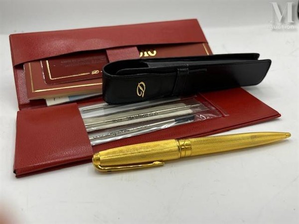 S.T. DUPONT Stylo bille Olympio en plaqué or à décor de semis de grains...