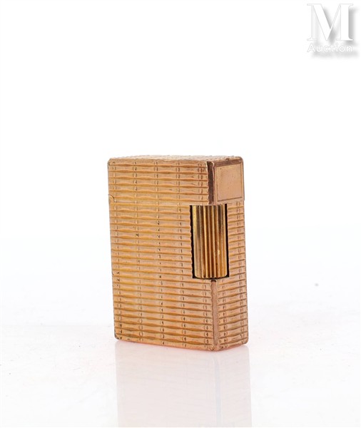 S.T. DUPONT Briquet en métal doré à décor d'un tressage. Signé et numéroté....