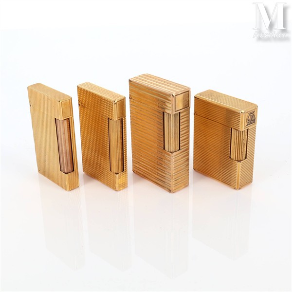 S.T. DUPONT Quatre briquets Dupont en plaqué or, dont deux extra-plat, à...