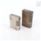 Due accendini Dupont in metallo argentato decorato con linee e griglie sinuose.