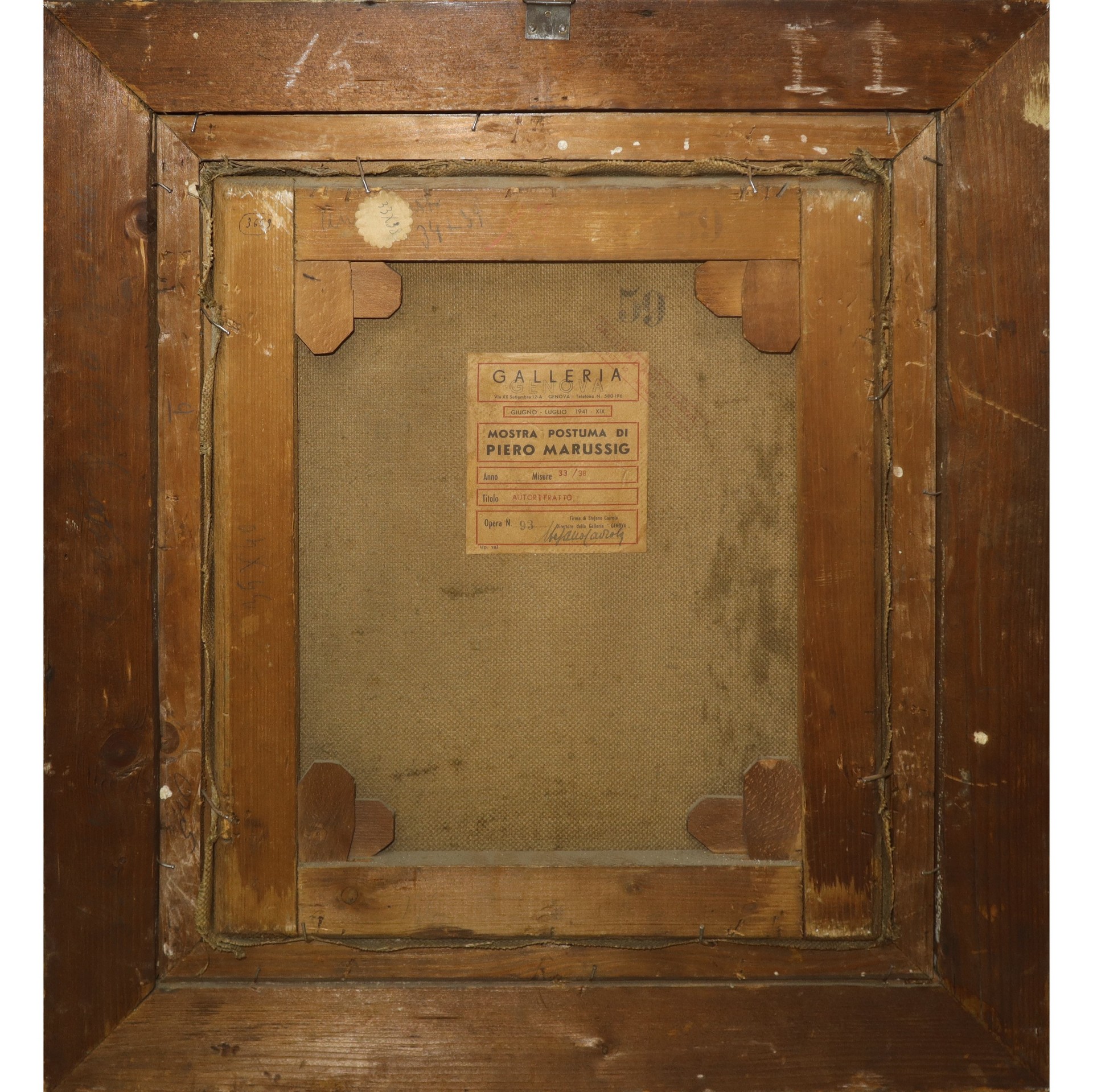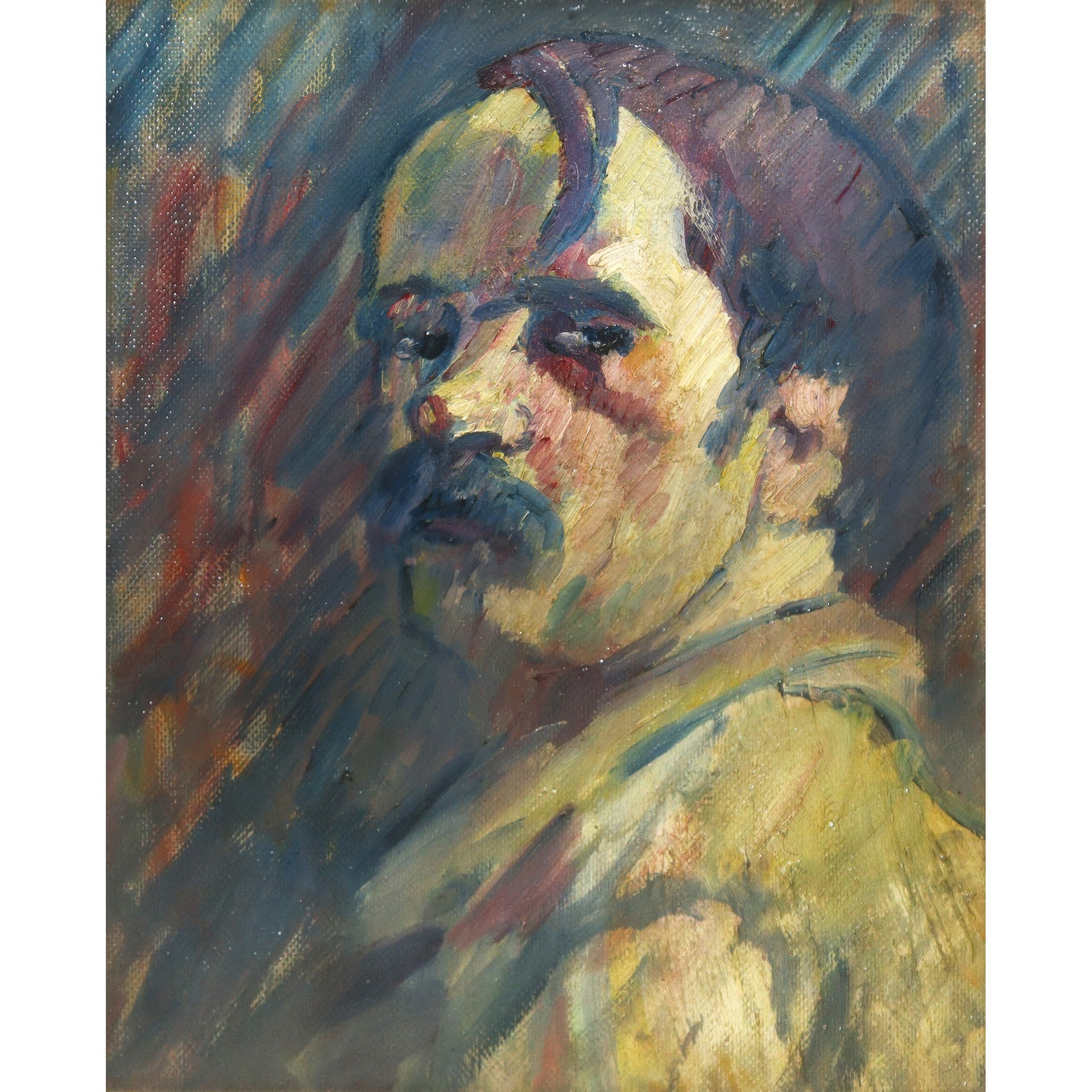 Piero Marussing (Trieste 1879 - 1937) - Autoritratto h cm 38x33, in cornice h cm 57,5X52 Olio su tela. Sul retro etichetta Galleria Genova, Viale XX Settembre 12A Giugno-Luglio 1941. Mostra Postuma di Piero Marussing