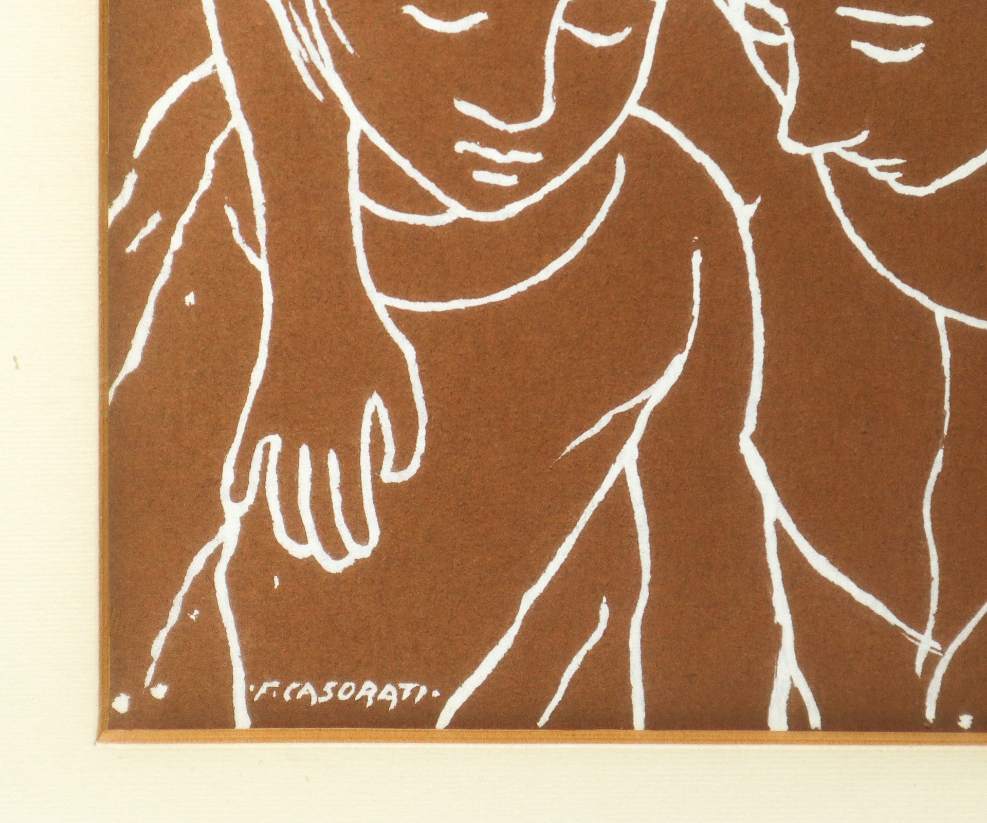 Felice Casorati (Novara 1883 - Torino 1963) - Le Amiche cm 18x18 in cornice h cm 35X35 Tempera su carta Firmato in basso a sinistra. Certificato di autenticità della Galleria Sant'Agostino