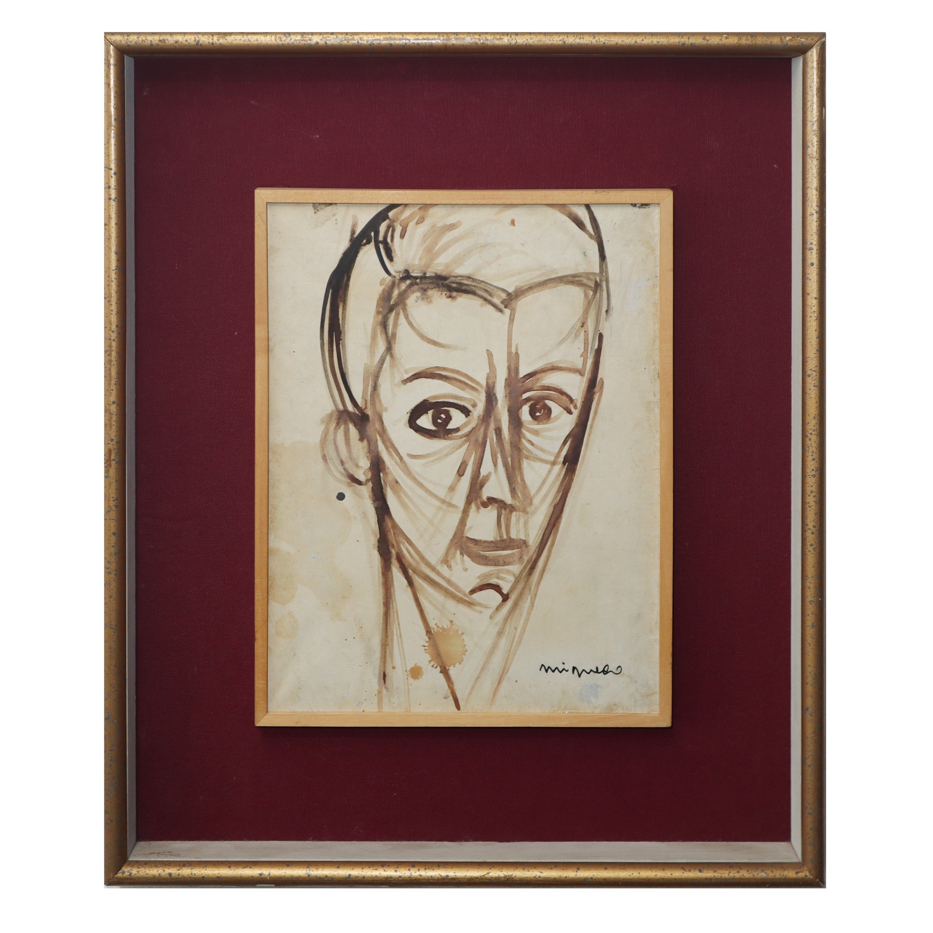 Giuseppe Migneco (Messina 1903 - Milano 1997) - Figura, 1960 ca 28 x 22 cm, in cornice 45,5 x 39 cm Tempera su carta applicata a tela Firmato al fronte in basso a destra e al retro, n° catalogo generale Migneco "6086-B". Autentica dell'archivio su fotografia