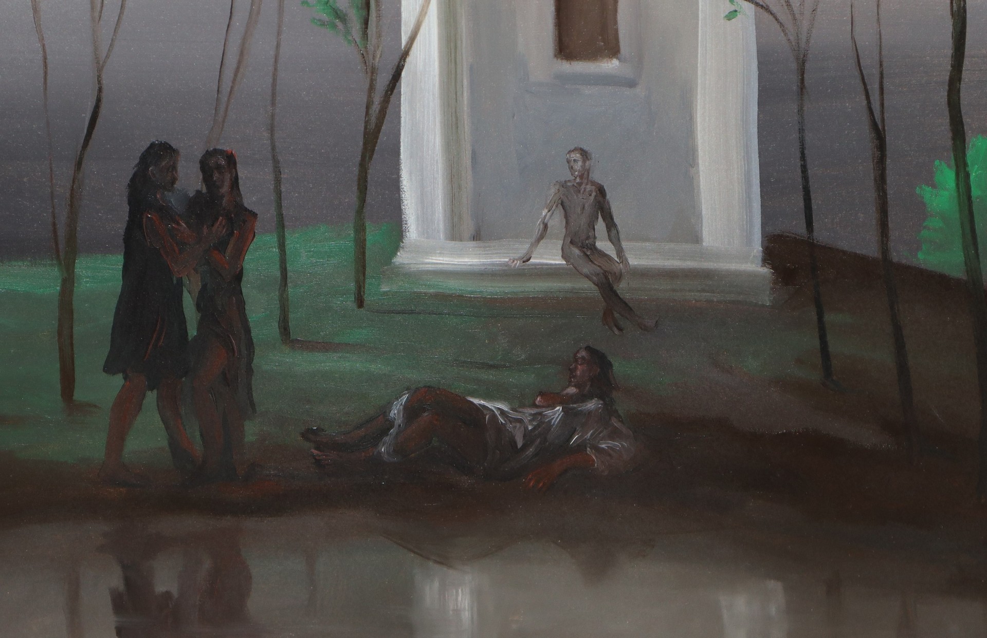 Silvano D'Ambrosio (Hayange 1951) - Delle cose nascoste, 1995 H cm 35x40 - in cornice H cm 58x63 Olio su tela Firma, titolo e anno al retro. Autentica dell'artista su fotografia