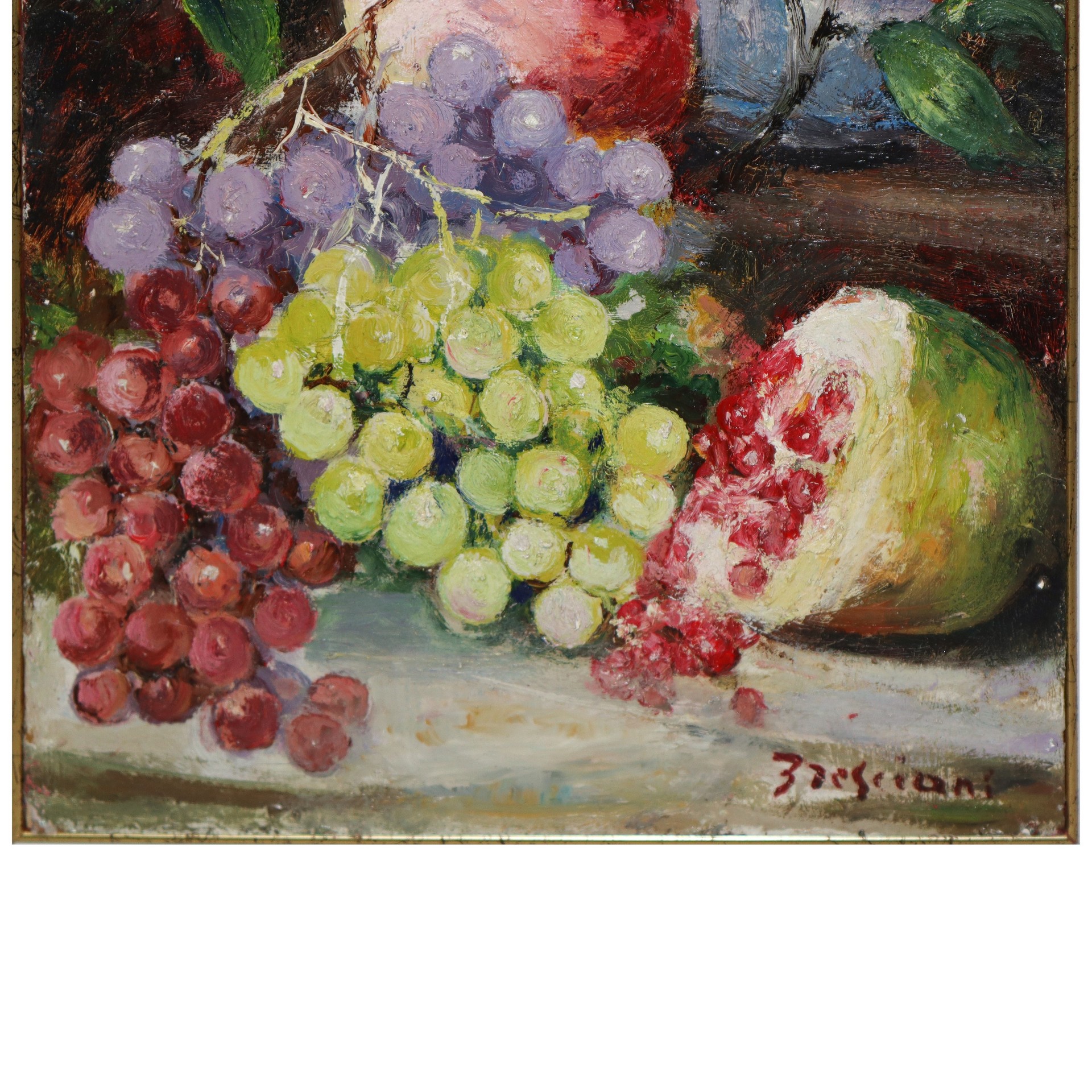 Antonio Bresciani - Frutti e brocca 50 x 30 cm , in cornice 70 x 54 cm Olio su tavola Firma al fronte in basso a destra.