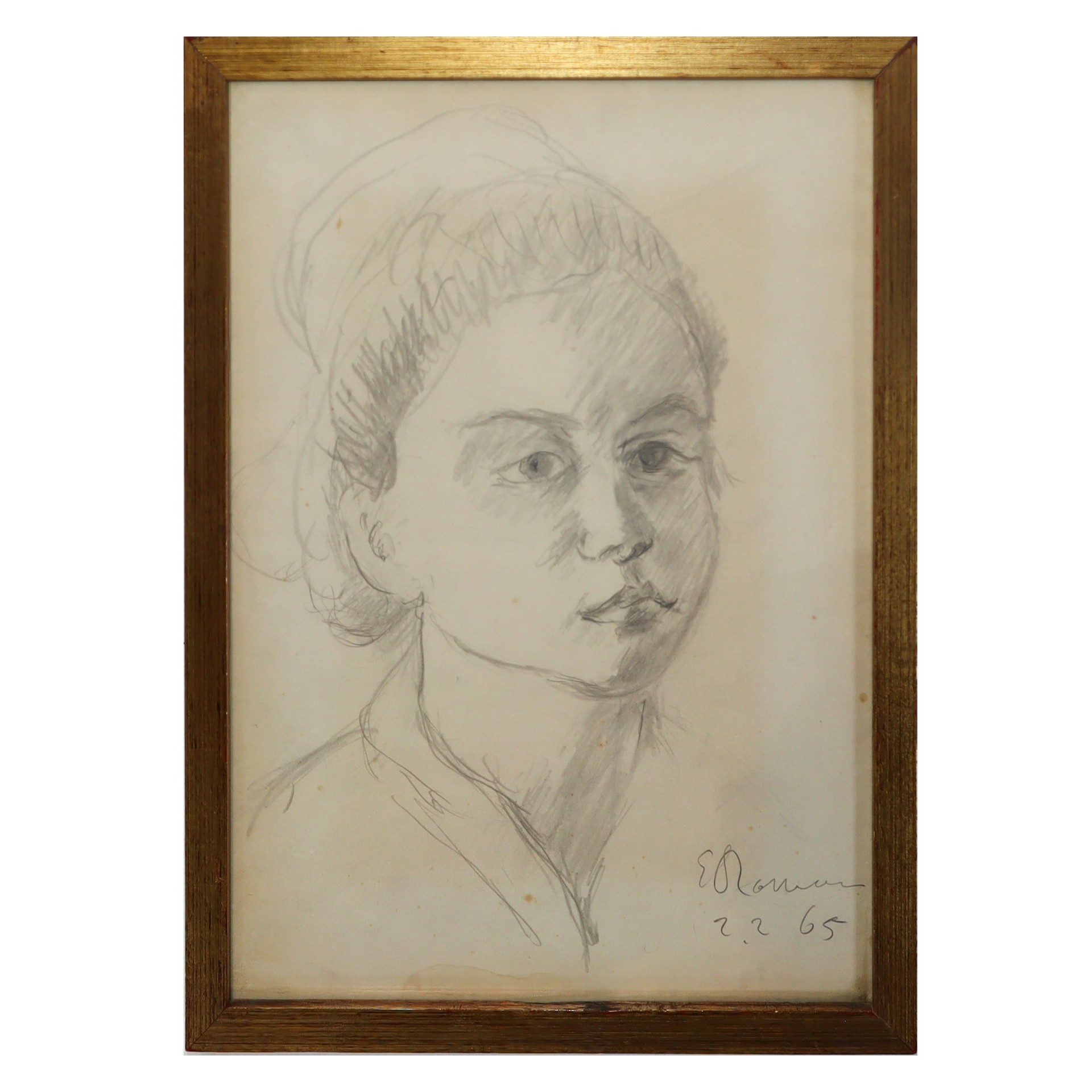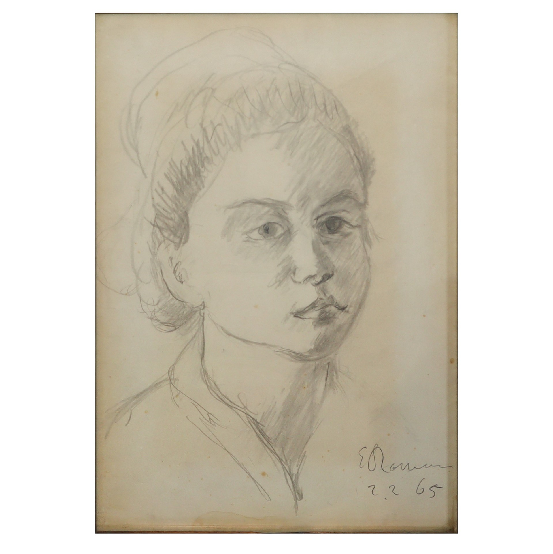 Elio Romano (Trapani 1909 - Catania 1996) - Ragazza, 1965 30 x 23 cm Disegno a matita su carta Firmato e datato al fronte in basso a destra.