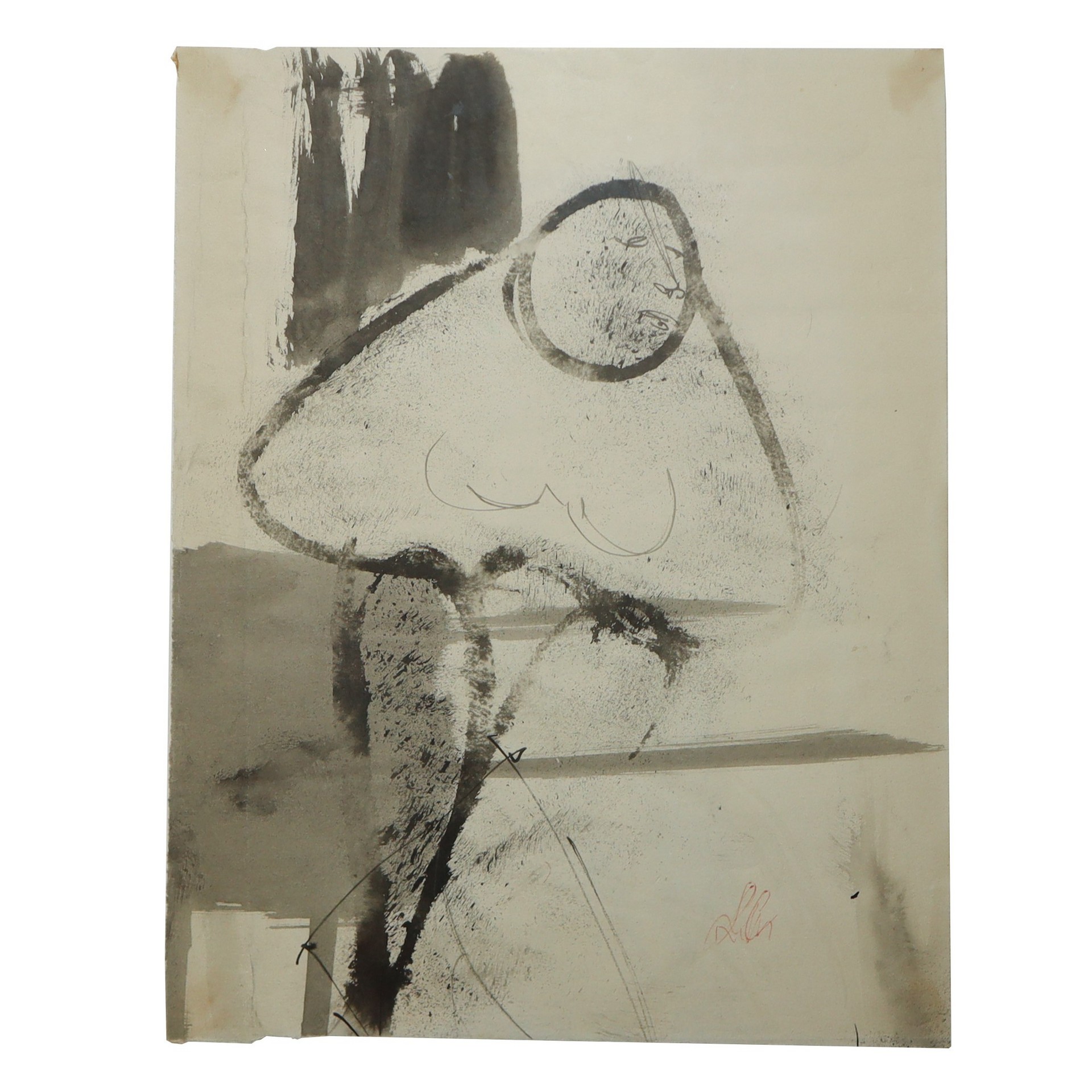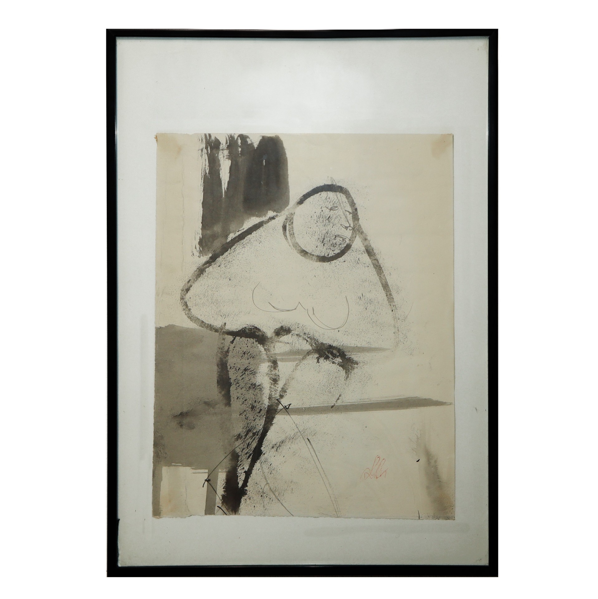 Matilde Iachelli (Francofonte 07/09/1946 - 2025) - Figura femminile nei toni del grigio e del nero , 60s/70s 28.5 x 24, in cornice 41 x 31 cm Acquerello Matilde Iachelli è una pittrice nata a Francofonte (Siracusa) che studiò pittura a Catania con Silvio Signorelli, ed Elio Romano.