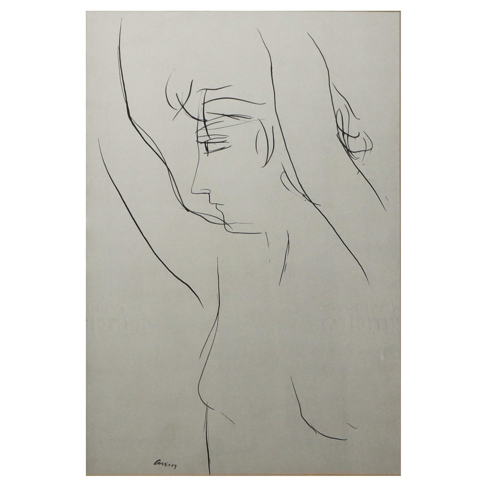 Nino Cordio (Santa Ninfa 1937 - Roma 2000) - Nudo di donna di profilo, 1959 h cm h cm 48X35 in cornice h cm 75X60 Firmato e datato in basso a destra Firmato e datato in basso a destra