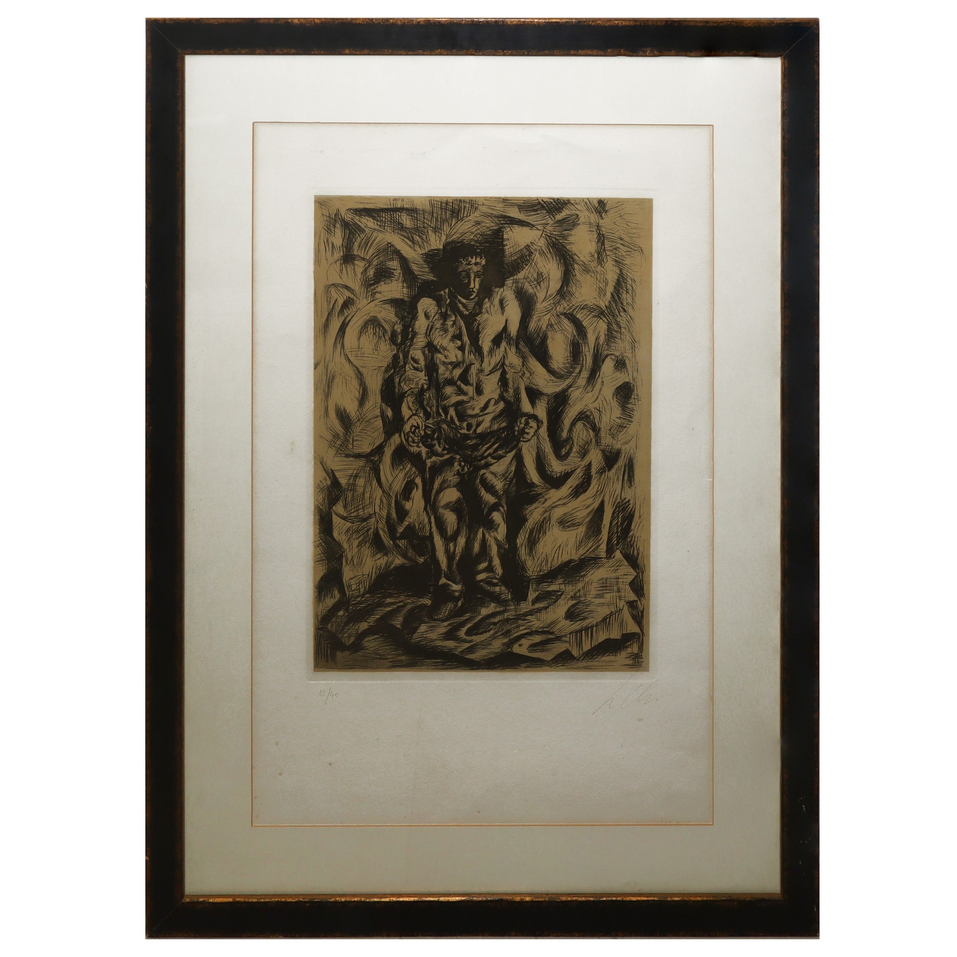 Sandro Chia (Firenze 1946) - Figura di uomo in catene h cm 81X53 in cornice h cm 106X78 Firmato in basso a destra. Tiratura in basso a sinistra 12/40 Firmato in basso a destra. Tiratura in basso a sinistra 12/40