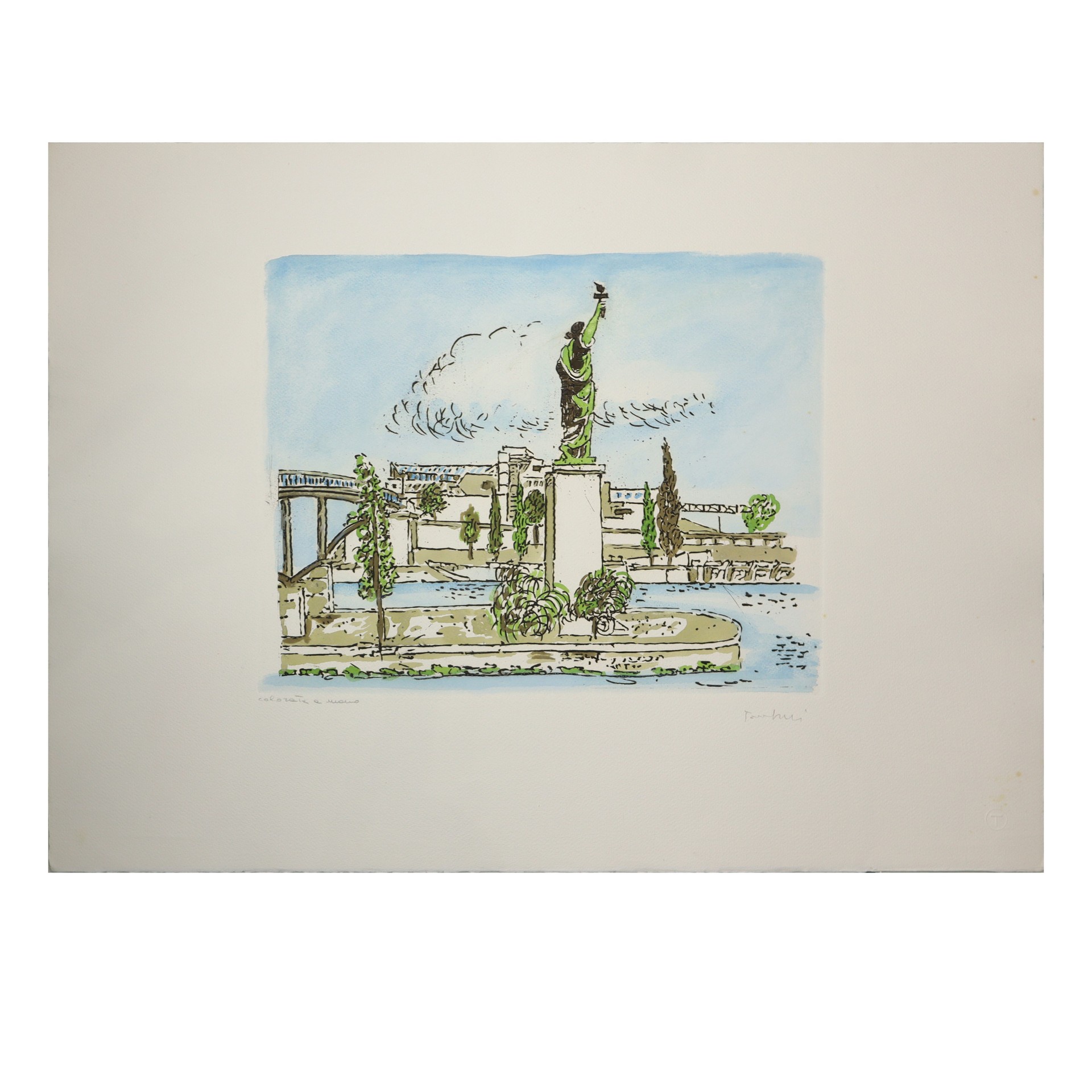 Orfeo Tamburi (Jesi 28 maggio 1910 - Parigi 15 giugno 1994) - Statua della Libertà 50 x 75 cm Acquaforte colorata a mano