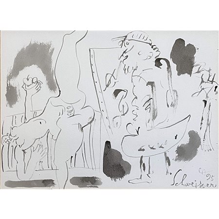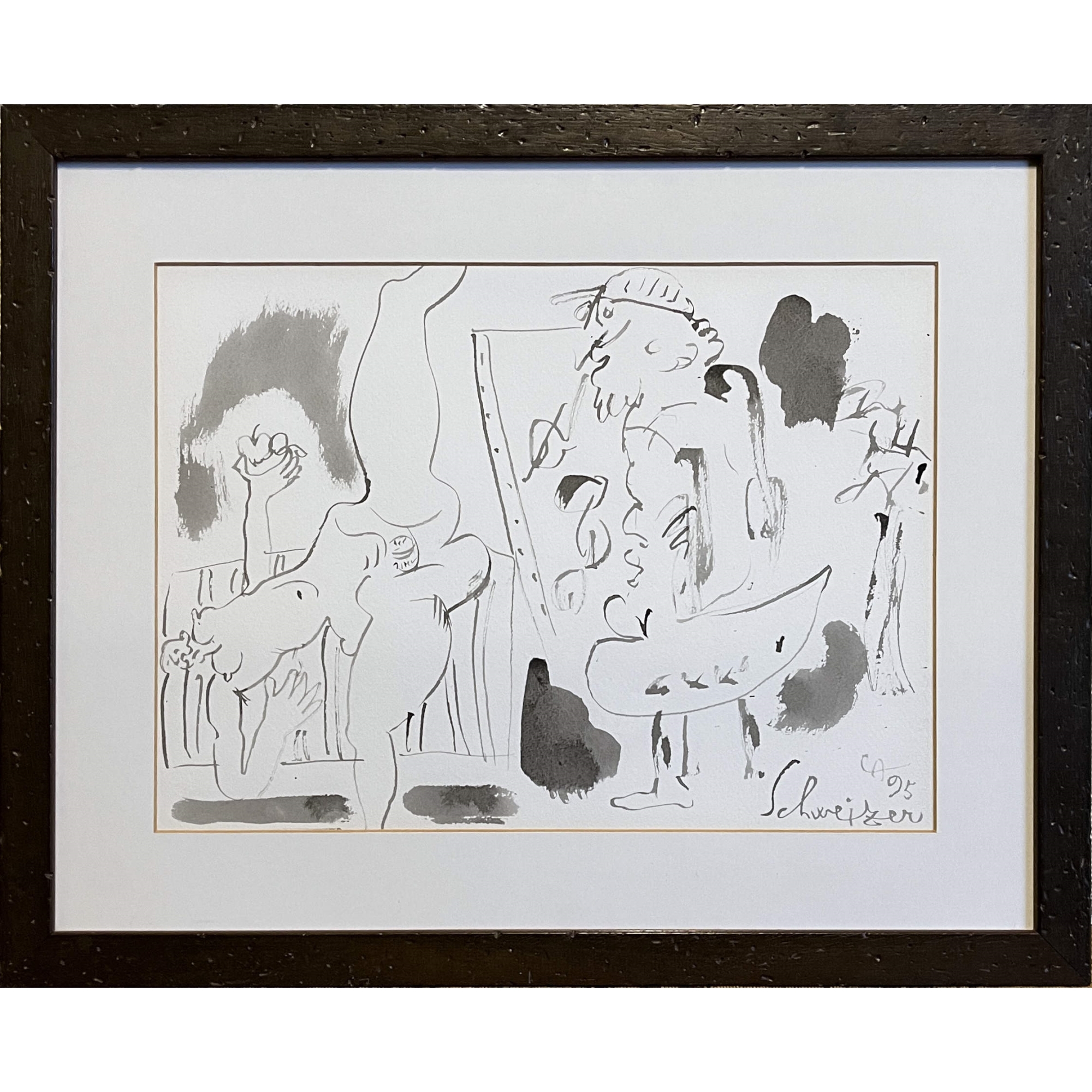 Riccardo Schweizer (1995), Il pittore e la modella, china aquerellata, cm...