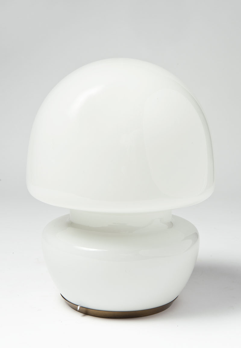 Lampada da tavolo in vetro incamiciato bianco con base in ottone. Produzione...